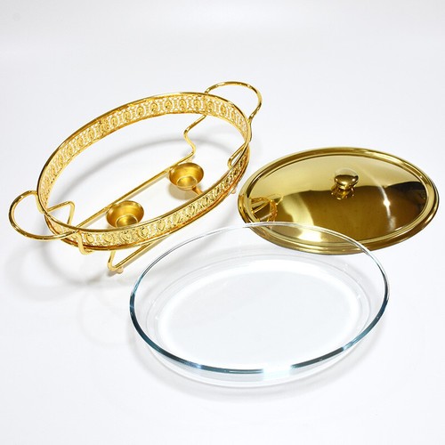 2/3L Commercial Buffet Pot Glass Alcohol Stove Household Hotel Oval Chafing Dish